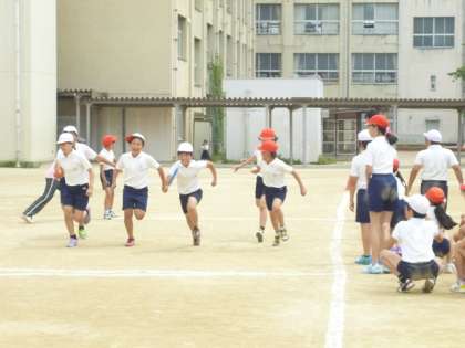 応援の声も一つになって運動場に響いていました。      (学校長)