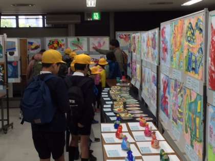 普段なら子ども達の作品を見つけるのに時間を要するのですが、今回は会場準備を手伝った井辺先生が子ども達すべての作品の場所を事前に☆チェック☆してくれていたので、ゆっくり見学することができました。