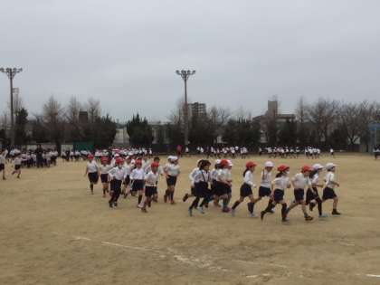 曇天でいまいちのコンディションでしたが、今日の15分休みに2・4・6年が最初の1周は担任の先生の先導で、2周目からは各自のペースでは音楽に合わせて走りました。 (教務)