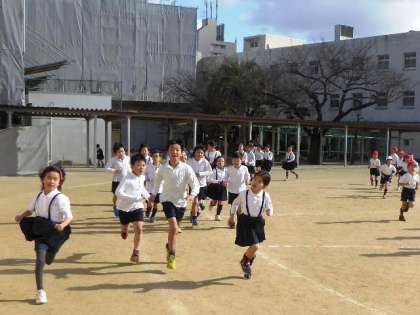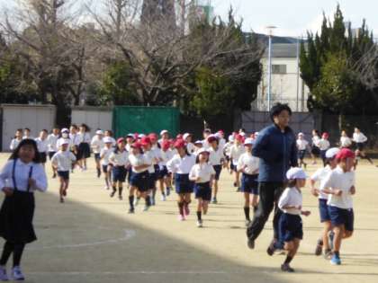 軽やかなBGMにのせて、寒さなんてなんのその子ども達は元気いっぱいです。でも、さすがに体調不良の多い6年生は今日は中止。早く体調を取り戻してほしいですね。