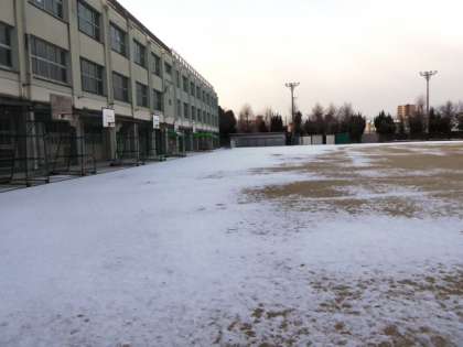 昨夜降った雪が、運動場を真っ白に覆い尽くし、厳しい寒さで