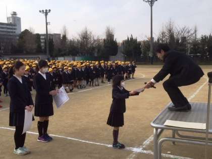 6年生のいない運動場はどこかさびしげに感じる集会です。