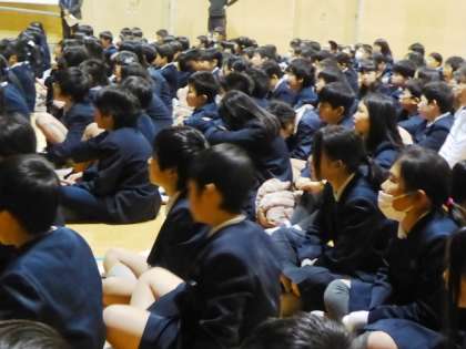 子ども達の表情は真剣そのもの。その後は、いざ災害が起きた時に自分の身をどのように守ればいいのか、避難所での生活は・・・などを考えるいいきっかけになッたことだと思います。