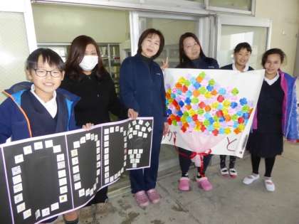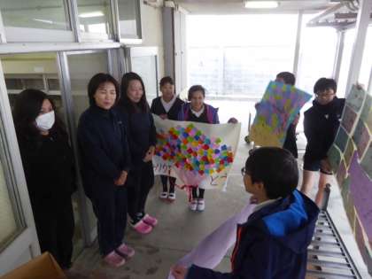 給食委員の代表が、「ありがとう」の言葉を添えて、1年生から6年生