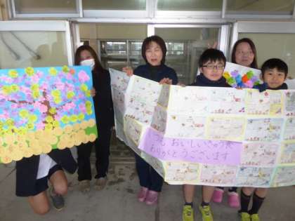 ジを手渡しました。後日、給食室目の掲示板に掲示する予定です。