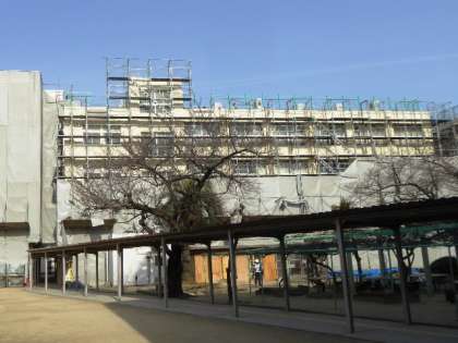 10月末から、外壁塗装工事のため校舎をおおっていた「シートと足場」の撤去が始まりました。