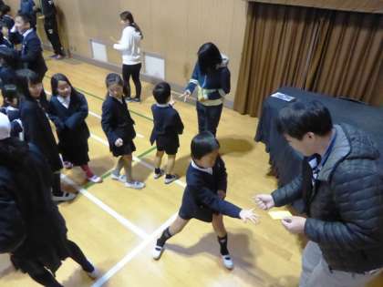 集会委員とじゃんけんして勝てばカードをゲットです。