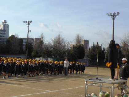 寒さに打ち勝つ強い身体と心をきたえるために、1年生から6年生までが「耐寒かけ足」に取り組んできました。
