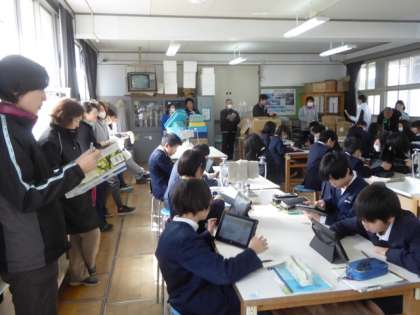 いつも以上にたくさんの先生方が見学、授業を見ながらチェックを入れた「授業アドバイスシート」「研究協議用シート」を放課後に持ち寄り研修会を行います。