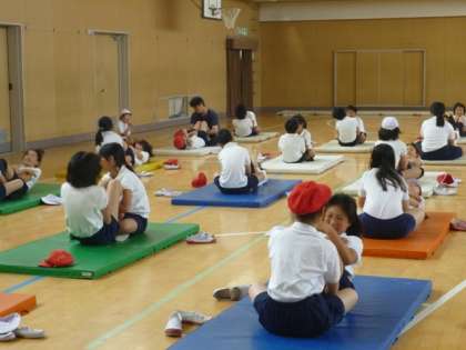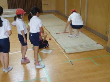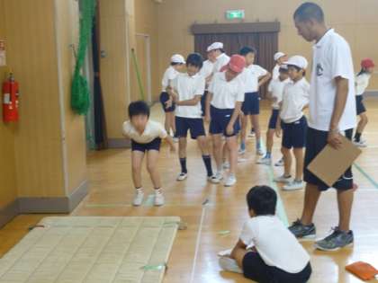タイミング良く飛び出せば距離は伸びるのですが、そのタイミングがなかなかつかめない。残念ながらすぐ目の前に着地する児童もたくさんいました。