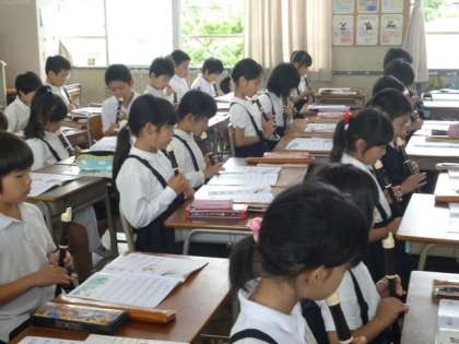 3年生の音楽、笛の授業です。