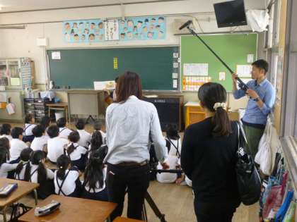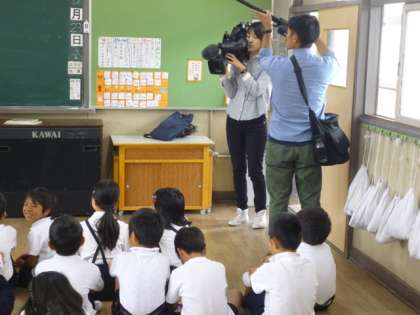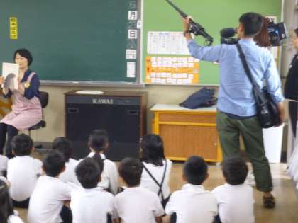 本校で長年、子ども達に読み聞かせ活動を行っている《えほんばたけ》の活動の様子を撮影し、インタビューを受けました。