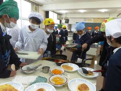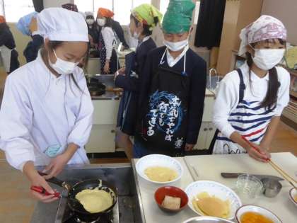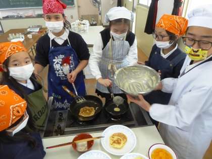 5・6時間目、5年2組が家庭科室で調理実習を行っていました。