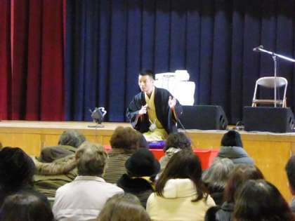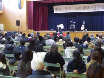 2人が小学生だった頃の思い出や、ともに東淀中学校時代のエピソードを随所にちりばめ、楽しい落語と素晴らしい歌と講演であっという間の2時間、講演会が終わるときには会場を埋め尽くした観客から大きな拍手が沸き起こっていました。
