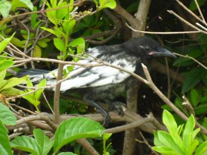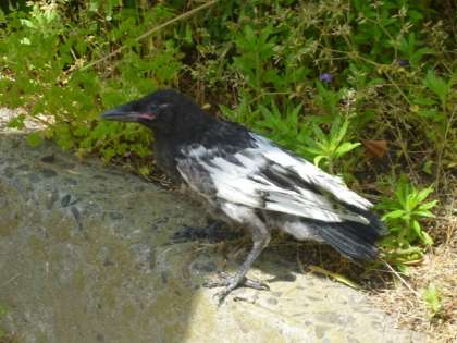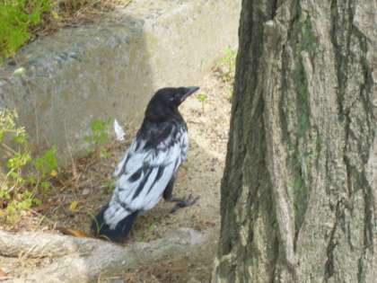 まだ幼鳥らしく、飛ぶことはできないようですが、どうみても顔つき・体つきはカラス。