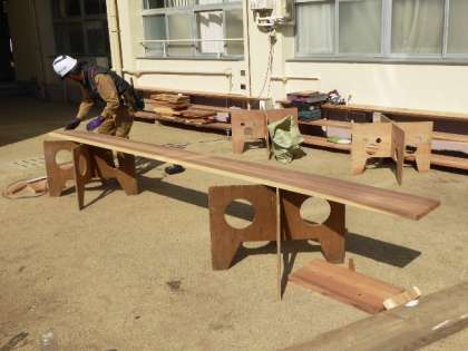 1・2年生のプランター置場の杉板、北・東校舎補修に合わせて、新しい杉板を付け直してくれています。