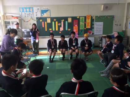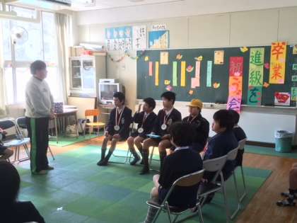 1部では、はじめの言葉から始まり、在校生代表が卒業生に「お祝いのことば。その後、卒業生と在校生に『がんばったで賞』のメダルが授与されました。