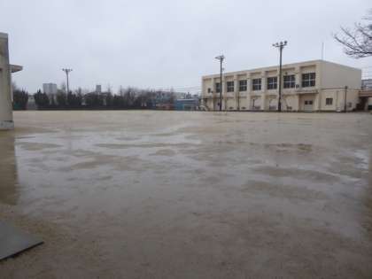 これだけ雨が降れば完全に冠水していた事務室前、通管工事のおかげでしっかりと水が流れるようになりました。