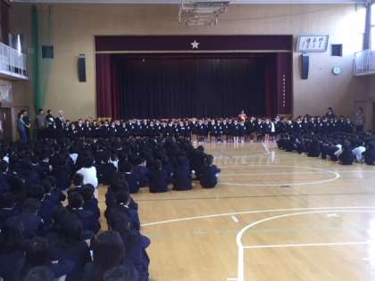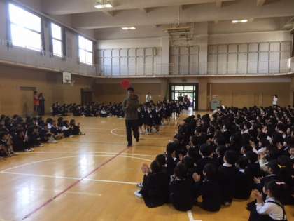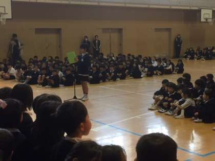 今日の1時間目、1年生から6年生の667名が講堂で「対面式」を行いました。