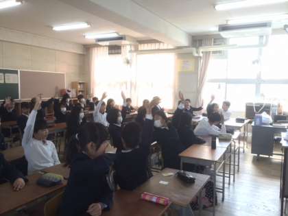 (3枚目)6年3組…「たてわり班リーダーになりたい人手を挙げて」の