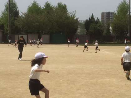3時間目の運動場、春とは思えない強い日差しが照りつけています。