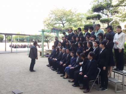 いえいえ、1年生の学級写真に先立ち、職員写真を撮影しました。