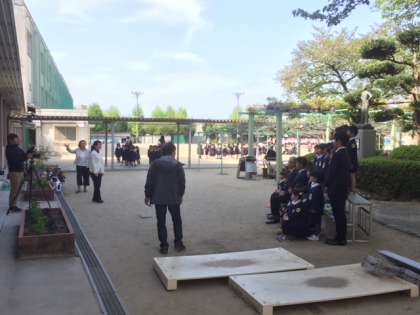 1年生は撮影の間、運動場でかしこく待機です。(1枚目写真に写っています)