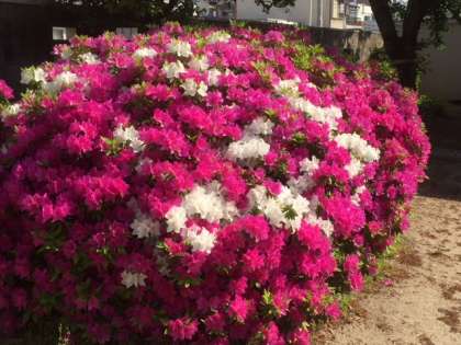 ○今年はツツジの開花が例年より早いです。ツツジだけでなく、校内のあ