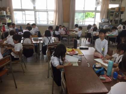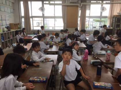 今日は3年生の遠足が延期になって、お昼はおうちの人が一生懸命つくってくれたお弁当でした。