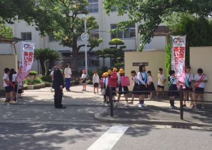 今回の「あいさつレンジャー」は、希望した児童1人につき参加は1日だけなので、本当にたくさんの子どもたちが参加してくれています。