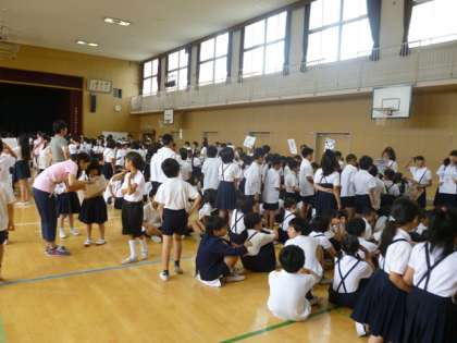 自分たちの場所もしっかり教えてもらったはずなのに、やっぱり低学年は迷ってしまってウロウロ。定位置につくだけで時間がいっぱいかかりました。