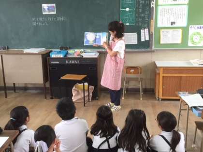 5月18日(金)、今朝は4年生の今年度1回目の読み聞かせ会「えほんばたけ」がありました。