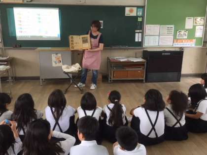 「えほんばたけ」の方が到着する前から、机を動かして待っている学級もありました。