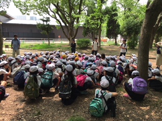 大阪城公園に着きました。今からお弁当を食べます。