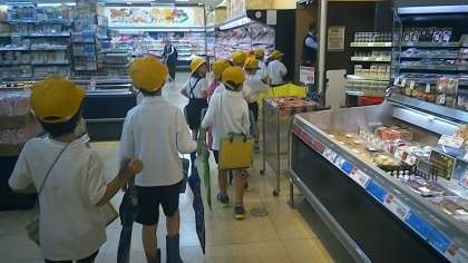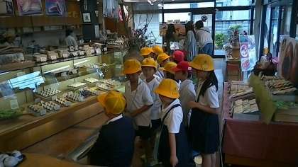 町たんけんでは、多くの保護者の方々にご協力をいただきました。本当にありがとうございました。写真 上から、あさだ、ライフ、定専坊 (2年)