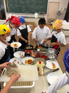 スクランブルエッグ、ゆでたまご、オムレツに目玉焼き、どれもしっかり焼いて、おいしくいただきました。 (6年)