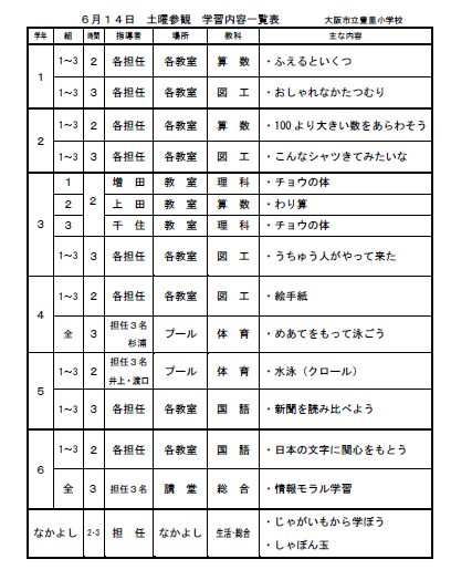 明日、6月14日(土)は『土曜授業』です。