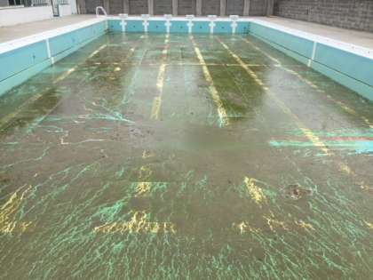 プールの底が見えましたが、やはり1年分の汚れやヘドロでいっぱいです。