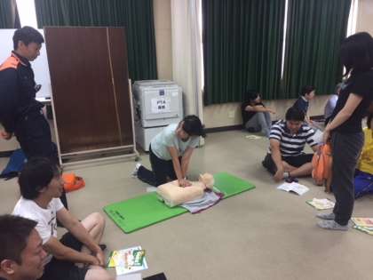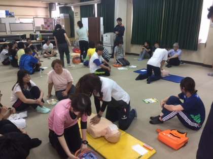東淀川消防署員の方にお越しいただき、初期対応の大切さと心肺蘇生法を教えていただきました。胸部圧迫法とAEDの使用の重要性を研修しました。PTAの方には参加できませんでしたが、教職員の研修の様子は写真でUPします。みんな真剣に受講していました。