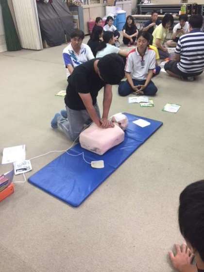 今日は、午前中にPTA、午後は教職員を対象にした救急救命講習会がありました。
