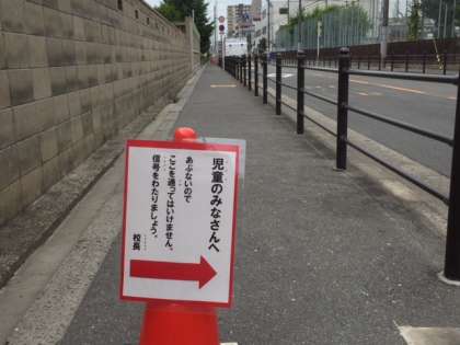 そこで、安全が確認されるまでの間、児童は当該箇所を通行禁止とし、視覚支援学校側の歩道を迂回して通行するようにします。 (教務)
