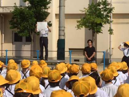 美化委員会からの連絡や生活指導の先生からの登下校時の歩行のしかたの注意など、もりだくさんの朝会でしたが、子どもたちは頑張ってしっかりと話を聞いていました。