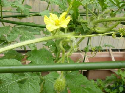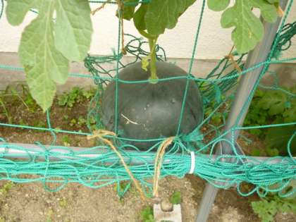 ○中庭の畑には、小ぶりながら見事スイカが成長しています。