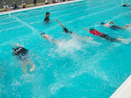 ※「くつ」をはいての着衣泳は水質汚染の関係から実施していません。