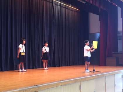 また、3年生の代表児童が《この1学期にがんばったこと》を発表し、 大きな拍手をうけていました。