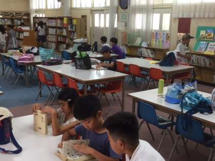 図書室では図書館開放が行われていて、プール開放やサマーチャレンジの前後の時間をつかって読書にはげんでいました。 (教務)