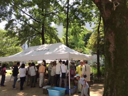 大阪市立明治小学校の隣にある阿波座南公園のビオトープの見学に来ました。地域が作られたビオトープで環境省や専門の先生の指導を受けて活発な活動をされています。今日も親子で環境保全のためのアクティビティをしています。午前中はその見学、午後は、実践発表が行われます。持ち帰って、できそうなことから始めたいと思っています。