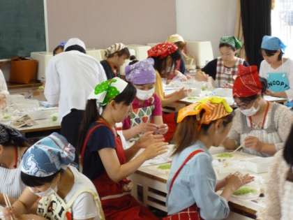 講師の先生から、手順を教えてもらい、お店さながらの和菓子作りに励んでいました。
