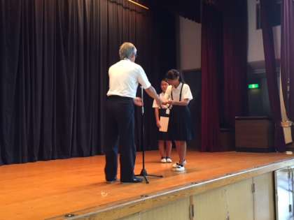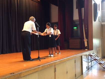 まずはじめに、夏休み中に行われた大阪市水泳記録会に参加した6年生の表彰を行いました。