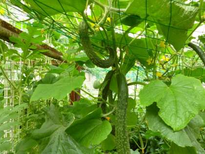 以前に、お知らせしたように、職員室前の中庭では、学習園以上にいろんな植物や花、野菜が栽培されています。